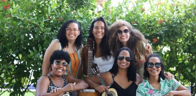 Coletivo feminino de samba é formado por Ju Moraes, Marília Sodré, Rayra Mayara, Grace Profeta, Lalá Evangelista e Marcinha BB